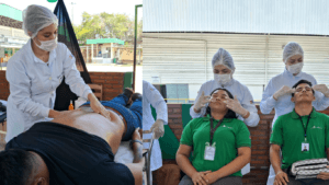 Yasmin Rabelo, aluna do 4° período de Estética e Cosmética, compartilhou sua experiência: “Hoje foi minha primeira ação, e amei proporcionar bem-estar às pessoas. Após a massagem relaxante, as pessoas se sentiram mais leves.”