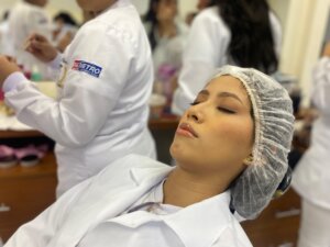 Na manhã desta quarta-feira (14), os acadêmicos do 4º período do curso Superior de Tecnologia em Estética e Cosmética do Centro Universitário Fametro participaram de uma aula prática na disciplina de Técnicas de Estética Facial, Visagismo e Maquiagem. A atividade foi conduzida pelo professor Fredson Saulo.