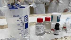 A atividade foi conduzida sob a mentoria do farmacêutico Dr. Mário Jorge, que acompanhou de perto cada etapa do processo, reforçando a importância da manipulação correta, da padronização e da segurança na preparação de medicamentos.