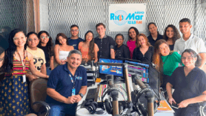 Outro destaque da visita foi o contato com a história da Rádio Rio Mar e da Fundação Rio Mar, que desenvolve projetos sociais voltados para educação, cidadania e inclusão.