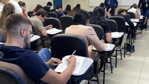Nesta sexta-feira (13), alunos do 11º e 12º período do curso de Medicina participaram da preparação de um simulado voltado ao Exame Nacional de Avaliação da Formação Médica (Enamed). A atividade tem como objetivo familiarizar os estudantes com o formato da avaliação nacional, promovendo o aprimoramento do raciocínio clínico, o domínio técnico cientifico e a segurança na tomada de decisões médicas.