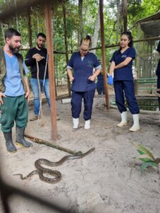 Durante a visita, os alunos também participaram de atividades práticas, como alimentação e manejo dos animais, além de abordarem questões relacionadas à legislação. O aprendizado incluiu a avaliação das estruturas dos recintos, o bem-estar animal e outros aspectos importantes da prática profissional.