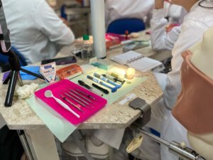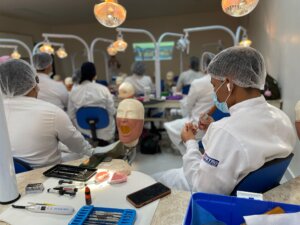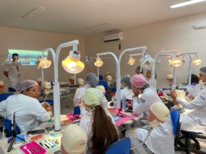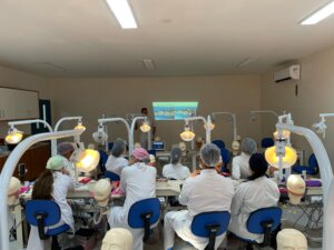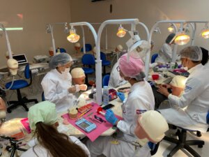 Durante a prática, os alunos aplicaram técnicas que beneficiam tanto o cirurgião-dentista quanto o paciente. Tradicionalmente, a reabilitação dentária era realizada com cerâmica, um método que exigia múltiplas etapas e maior tempo de execução. No entanto, a restauração semidireta se destaca como uma alternativa eficiente, especialmente para pacientes com grande destruição dentária.
