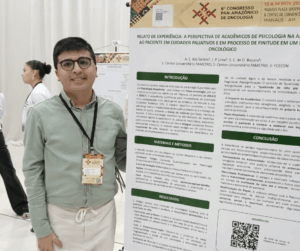 O acadêmico Anderson Silva, do 10º período de Psicologia do Centro Universitário CEUNI Fametro, participou com o trabalho “A perspectiva de acadêmicos de Psicologia na assistência ao paciente em cuidados paliativos e em processo de finitude em um hospital oncológico”. Anderson relata que descobriu o congresso por meio da divulgação interna na Fundação Centro de Controle de Oncologia do Estado do Amazonas (FCECON), onde realiza estágio curricular.
