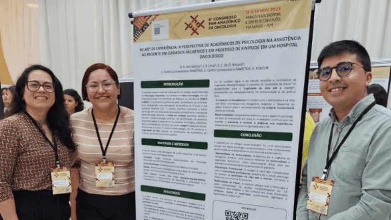 “Foi uma grande oportunidade apresentar em um evento científico de tamanha relevância para a área oncológica, especialmente considerando nossas características regionais amazônicas. Tivemos muito apoio dos nossos supervisores locais de estágio nas discussões, ajustes e construção do trabalho. Além disso, contamos com a orientação do professor Júlio César, da Fametro”, afirmou.