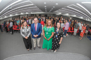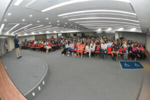 A Coordenação do curso de Direito do Centro Universitário Fametro promoveu a acolhida dos calouros, reunindo mais de 700 alunos novatos no auditório Naide Lins, Unidade 2. O evento teve como tema “A contribuição da OAB às melhorias do ensino jurídico”, destacando a importância da Ordem dos Advogados do Brasil (OAB) na formação acadêmica e profissional dos futuros juristas.