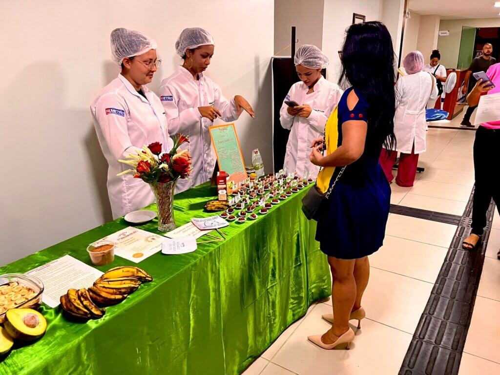 As alunas do curso de estética e cosmética realizaram a primeira I mostra de Receitas Culinárias com alimentos funcionais da disciplina de nutrição básica. O evento foi realizado na última quarta-feira (14/06) na unidade da Fametro, no município de Tefé.