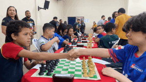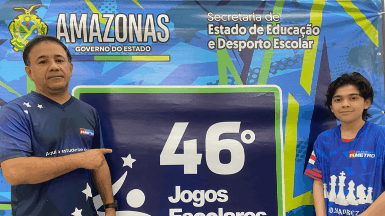 O estudante Ícaro Thierry do Vale Coelho, do 6º ano do Colégio Fametro, está participando dos Jogos Escolares do Amazonas (JEA’s) na modalidade Xadrez Infantil, competindo nas categorias Blitz e Pensado.