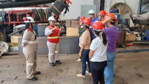 Durante a atividade, os alunos conheceram de perto o funcionamento do processo produtivo da empresa e entenderam, na prática, como são aplicadas as leis, normas regulamentadoras e certificações ISO voltadas à gestão ambiental e à segurança.