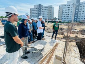 Nesta terça-feira (24), estudantes do 7º período de Engenharia Civil da Fametro participaram de uma visita técnica à obra do condomínio Nagoya, da construtora MRV, como parte da disciplina de Fundações.