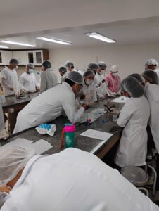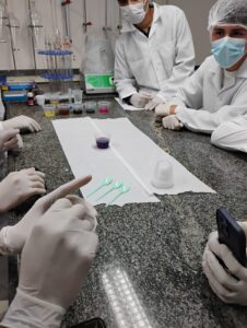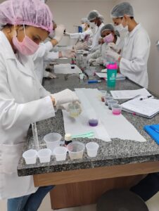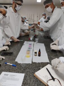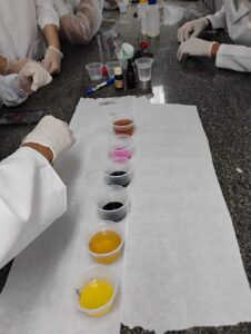 A atividade, realizada em laboratório, integra a disciplina de Química Geral e Experimental e teve como objetivo transformar conteúdos teóricos em experiências práticas.