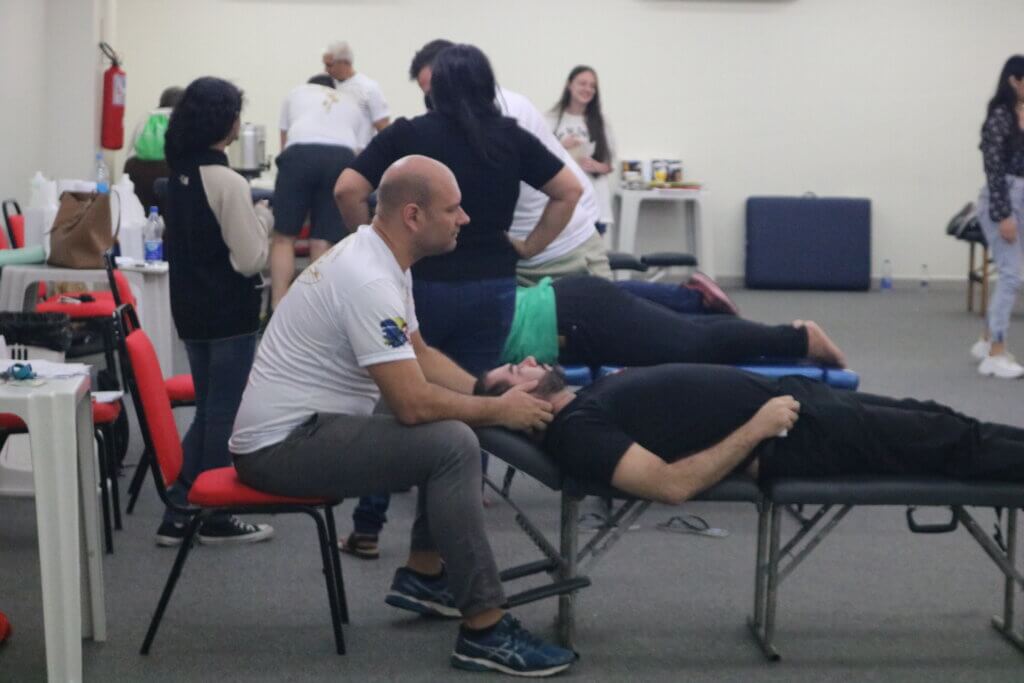 Nesta terça-feira (27/06), o Centro Universitário Fametro promoveu uma ação de quiropraxia gratuita com o intuito de proporcionar alívio e bem-estar à população. O quiropraxista Adriano Schuster ressaltou a importância dessa iniciativa, que utiliza essa ciência para tratar desconfortos e permitir que o corpo funcione plenamente.