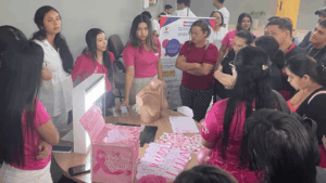 A ação teve como foco a prevenção do câncer de mama e a análise radiográfica de patologias mamárias, destacando a importância do diagnóstico precoce. Durante a atividade, os estudantes distribuíram folders informativos e lembrancinhas aos visitantes, reforçando orientações sobre a mamografia como principal exame preventivo.