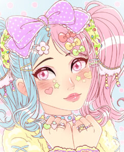 Conquistou alguns prêmios: foi vencedora do 1º. Concurso de Desenho do evento Amazon Game Party (Animeniacxmao/ SESI, 2015) e da categoria D do 13º. Concurso de Desenho e Mangá (Nippaku, 2015). Possui personagens autorais, entretanto também costuma fazer releituras, em seu estilo, de personagens já existentes no segmento de Anime, além de art trade (combinação feita, entre artistas, em que cada um desenha o personagem do outro) e encomendas.