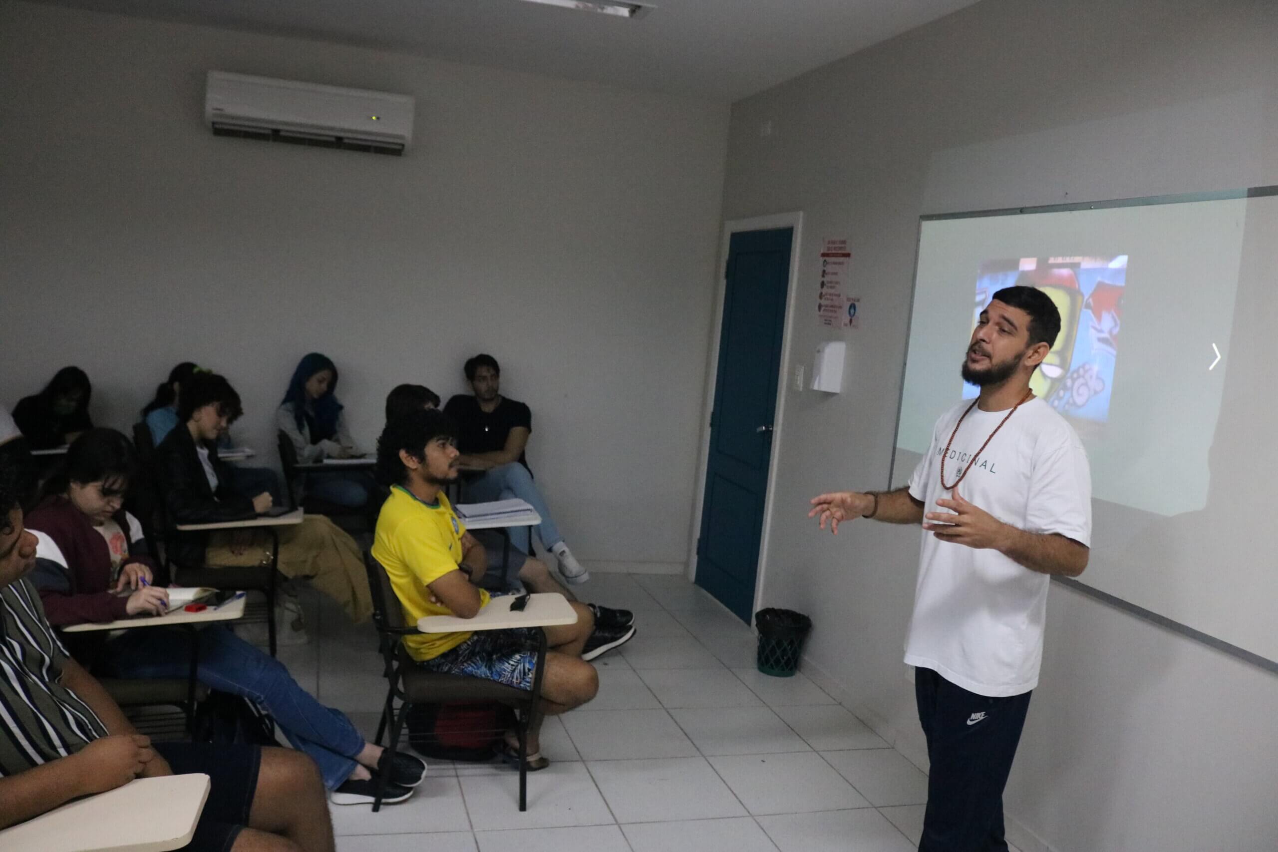 O curso de Design Gráfico recebeu o artista visual e grafiteiro Raiz Campos para uma palestra sobre “ Arte com Grafite”, na manhã desta segunda-feira (20/03), na Unidade do anexo da Fametro, localizado na Avenida Constantino Nery, 3000, Chapada, em Manaus.