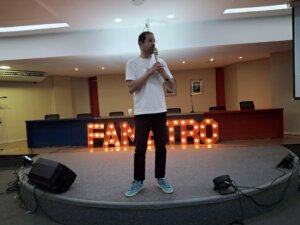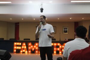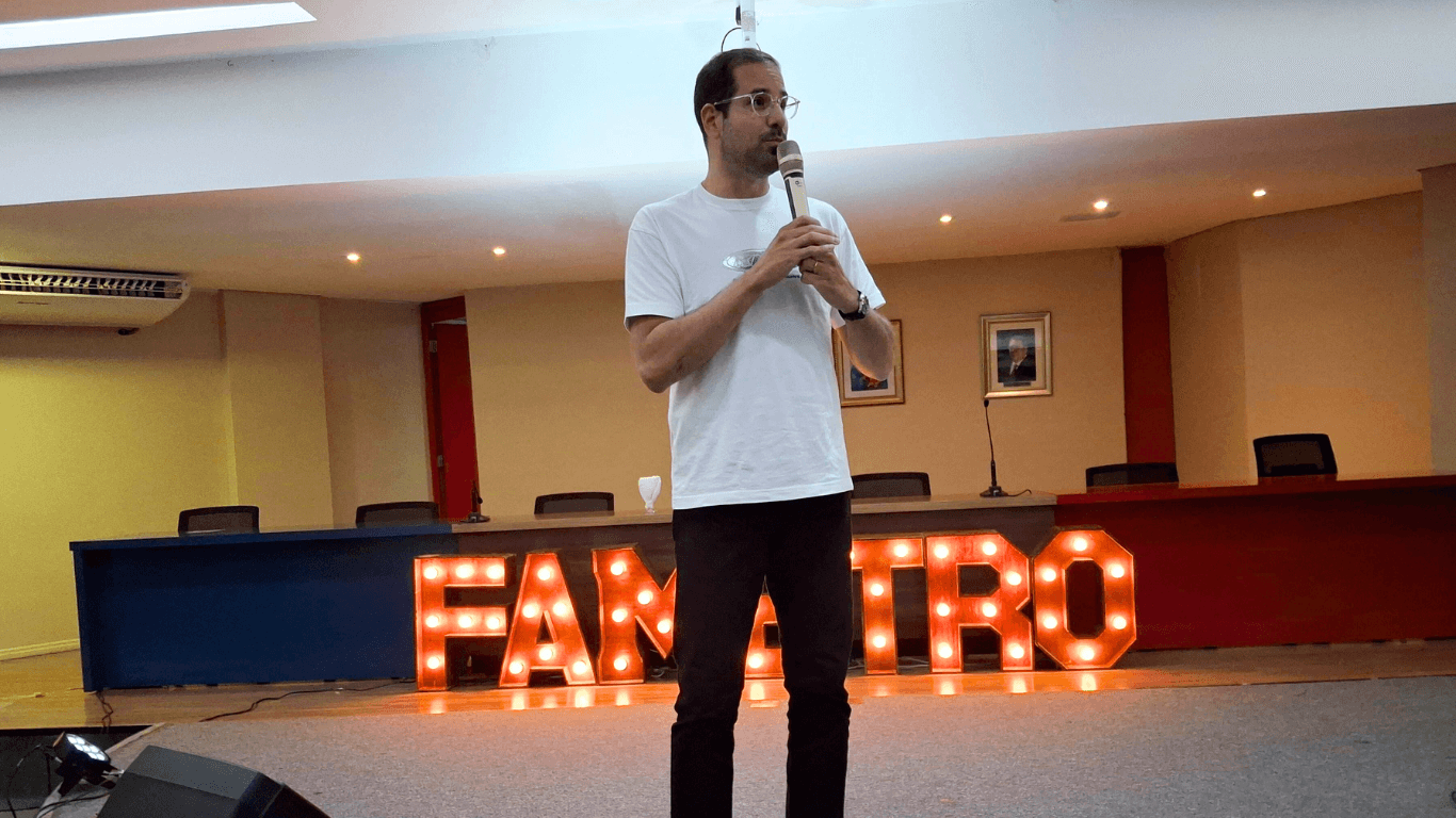 “Me surpreendeu. Veio gente até de Engenharia! Você não imagina que alguém dessa área vá a uma palestra de comunicação, né? E é muito legal isso. Acho que mostra que a comunicação está presente em todos os cursos e profissões. O pessoal da Fametro é diferenciado, quer aprender pra valer. Senti uma sede por conhecimento, uma vontade genuína de absorver mais informações.”