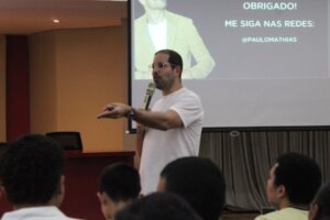 O comunicador e empresário Paulo Mathias foi o convidado especial da noite, trazendo reflexões sobre o impacto da comunicação na era digital e o papel das novas tecnologias nos mais diversos segmentos profissionais. A presença de estudantes de cursos como Jornalismo, Publicidade e Propaganda, Direito, Administração, Marketing, Pedagogia e Ciência da Computação reforçou a abrangência do tema.