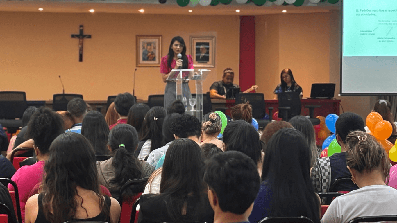Realizado nos turnos matutino e noturno, o evento contou com uma programação diversificada, incluindo palestras com profissionais da área da saúde, rodas de conversa com familiares de pessoas autistas e momentos de troca de experiências. Os encontros aconteceram das 8h30 às 11h e das 18h30 às 21h, reunindo alunos, professores e convidados em um espaço de escuta e aprendizado coletivo.