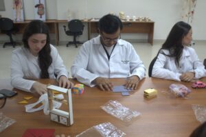 A ação ocorreu no Laboratório de Anatomia Humana 3, na Unidade 5, e integrou a disciplina de Testes Projetivos. Durante a atividade, estudantes de diferentes períodos utilizaram jogos e brincadeiras como recursos para compreender o comportamento infantil, destacando a importância do lúdico no processo terapêutico.
