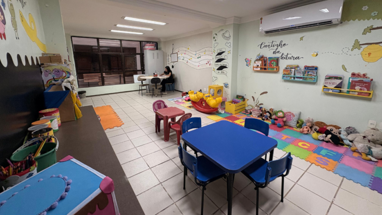 Na brinquedoteca, são realizadas atividades lúdicas por meio de brincadeiras, que estimulam a leitura, a coordenação motora e a convivência com outras crianças. Para ser beneficiado, é necessário preencher um formulário de cadastro com todas as informações da criança, incluindo dados sobre a vida escolar, o processo de ensino e aprendizagem, além dos dados do responsável para eventuais situações.