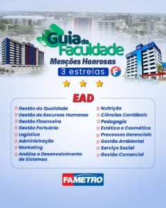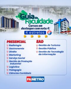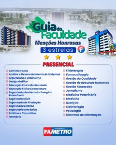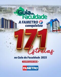 Com 23 anos de atuação no ensino superior, o Centro Universitário Fametro alcançou 171 estrelas no ranking nacional do Guia da Faculdade 2025, um reconhecimento que evidencia a qualidade acadêmica, o compromisso com a formação profissional e a relevância da instituição para a educação na Amazônia.
