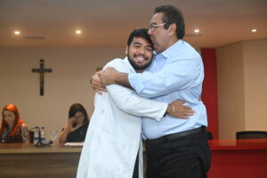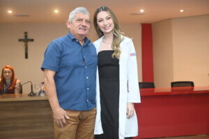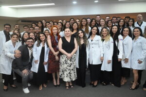 “Hoje é um dia de celebração. A partir de agora, cada um de vocês começará a atender pacientes reais, passando horas nos plantões e vivenciando a prática médica de forma intensa.”O professor Dr. Hiochelson Najibe também compartilhou sua visão sobre essa nova etapa acadêmica, lembrando que 2024 foi um ano repleto de desafios e deixando uma mensagem de incentivo aos alunos: “O internato é o momento em que vocês saem da sala de aula e passam a viver a Medicina na rotina hospitalar. Aproveitem essa fase para aprender e evoluir.”