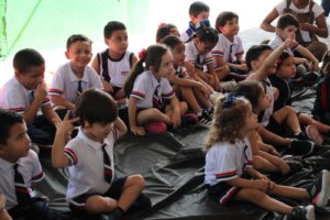“Hoje, tivemos a participação da contadora de histórias Luciana Vaz, um evento incrível para as crianças, pois estimula a imaginação e o desenvolvimento cognitivo. As atividades realizadas na Educação Infantil seguem a BNCC, focando no desenvolvimento integral das crianças, tanto no aspecto cognitivo quanto psicomotor”, enfatizou.