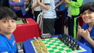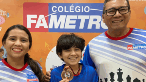 Nesta segunda-feira (2), o Colégio Fametro encerrou sua participação nos Jogos Estudantis (JEPAM) 2025, com as últimas disputas realizadas nas dependências da instituição. A equipe de xadrez da escola, composta por cinco atletas nas categorias infantil e juvenil, marcou presença no evento, que reuniu cerca de 70 competidores.