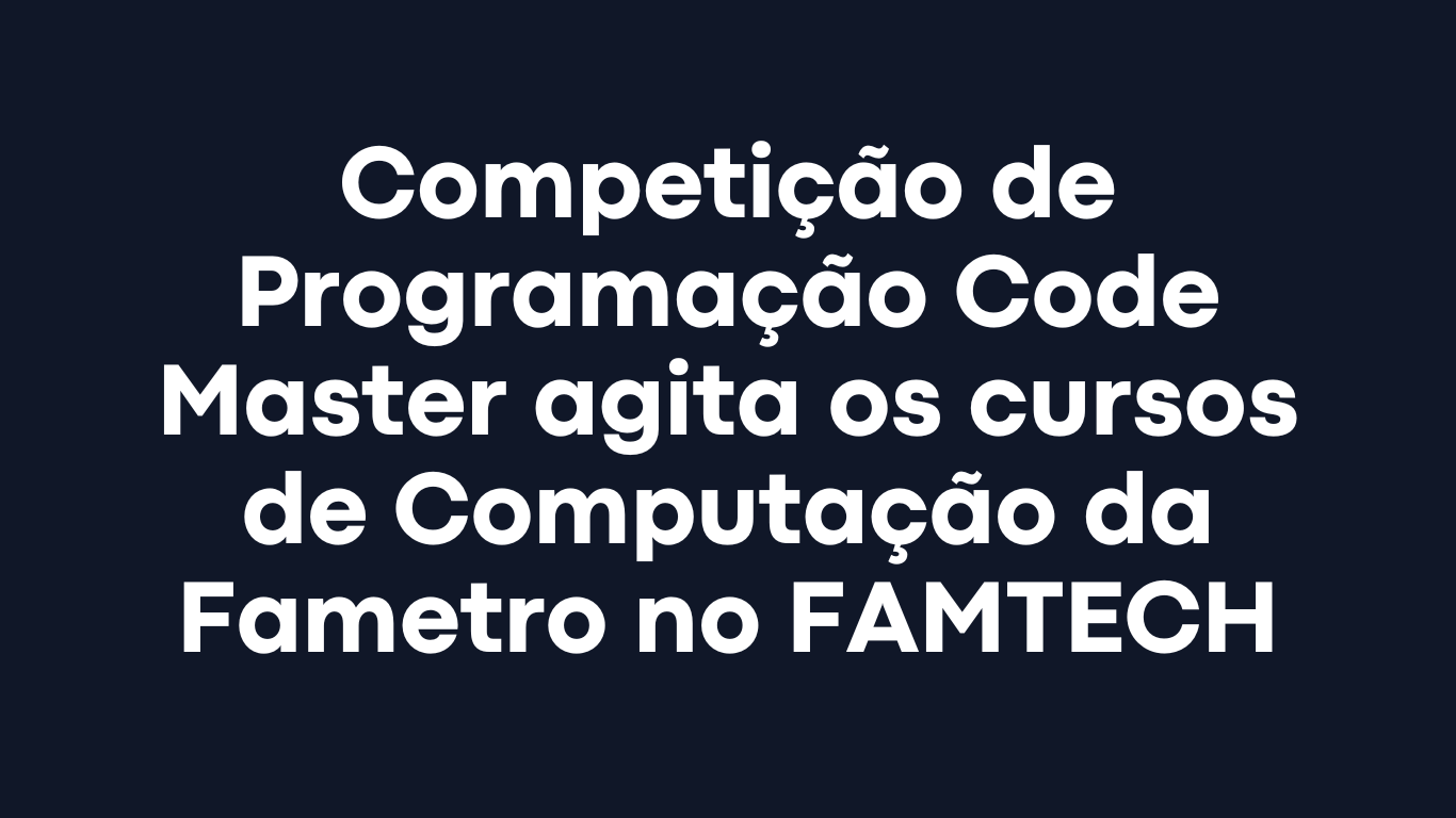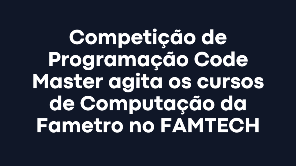 A Fametro está prestes a sediar uma competição de Programação denominada Code Master, como parte das atividades do evento FAMTECH. Este desafio promete reunir os melhores talentos acadêmicos dos cursos de Análise e Desenvolvimento de Sistemas, Sistemas de Informação, Engenharia da Computação e Engenharia de Software, proporcionando uma experiência única e desafiadora.