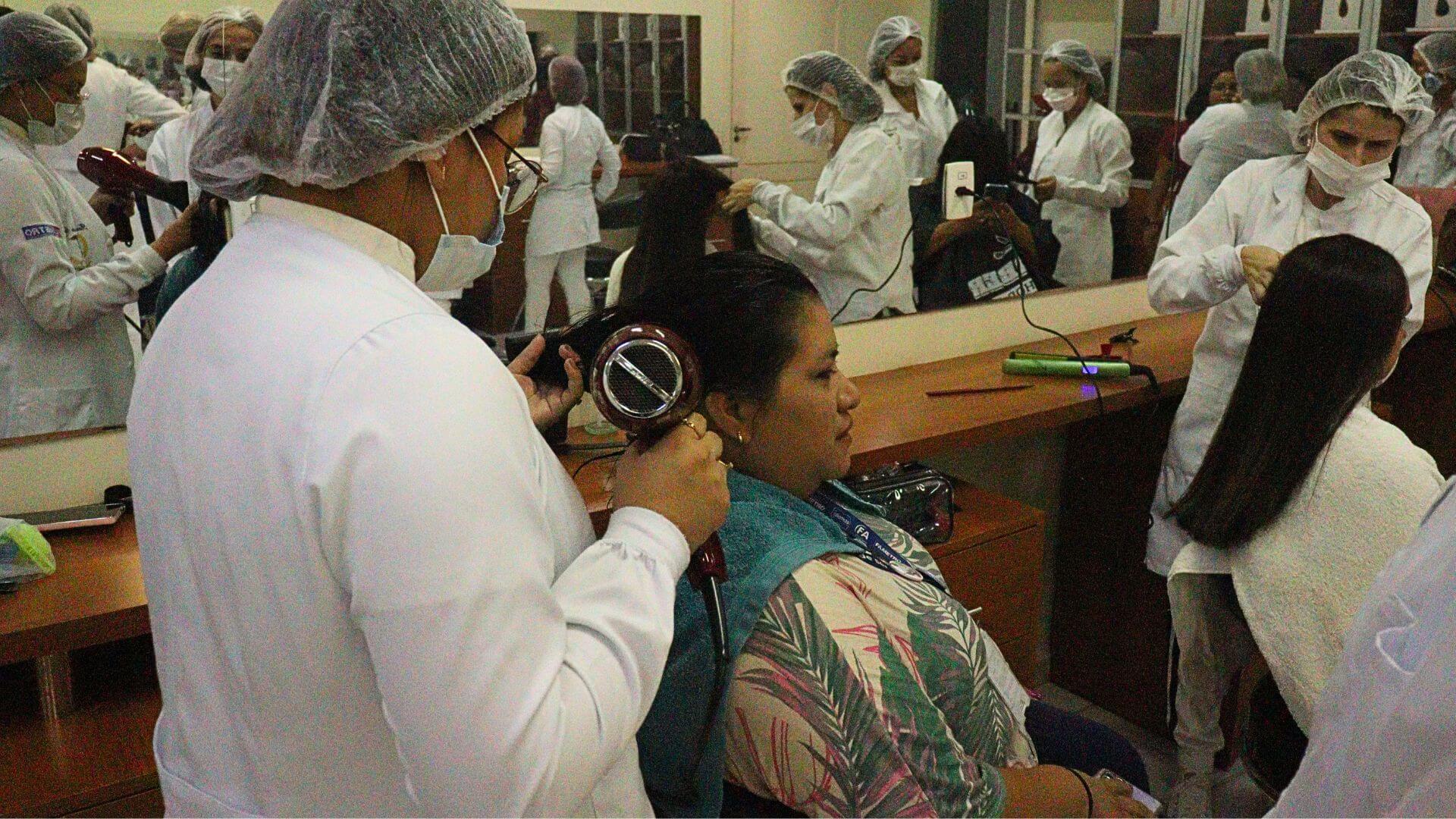 “O intuito das aulas, não é só fazer escova e nem piastra. Na verdade, são tratamentos capilares que ajudam também na reconstrução dos fios danificados por algum procedimento ou corte químico. Com a avaliação do couro cabeludo e a fibra capilar, conseguimos orientar nossos alunos sobre os cuidados para aquele fio danificado”, explicou a coordenadora do curso, Kamila Barros.