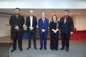 Na terça-feira (13), o Centro Universitário Fametro realizou uma palestra sobre o “Projeto de Acesso à Justiça nas Faculdades” para 108 estudantes de Direito, no Auditório Naíde Lins, localizado na zona Centro-Sul de Manaus. O evento, que destacou a parceria entre a Escola Judicial do Tribunal de Justiça do Amazonas (EJUD) e a instituição, contou com a participação do Desembargador Cezar Luiz Bandiera, do Secretário-Geral Rafael Luan Andrade Santos, e do Juiz Luis Cláudio Chaves e da reitora Maria do Carmo Seffair.