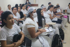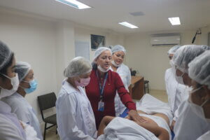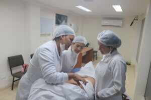 A egressa do curso, Loaina Nascimento, também participou da aula e reforçou o papel das atividades práticas na formação acadêmica. “A estética é uma área muito ampla. Durante o curso, abordamos, por exemplo, como proceder em casos de pré e pós-operatório. Essas práticas foram essenciais para o meu aprendizado”, relatou.