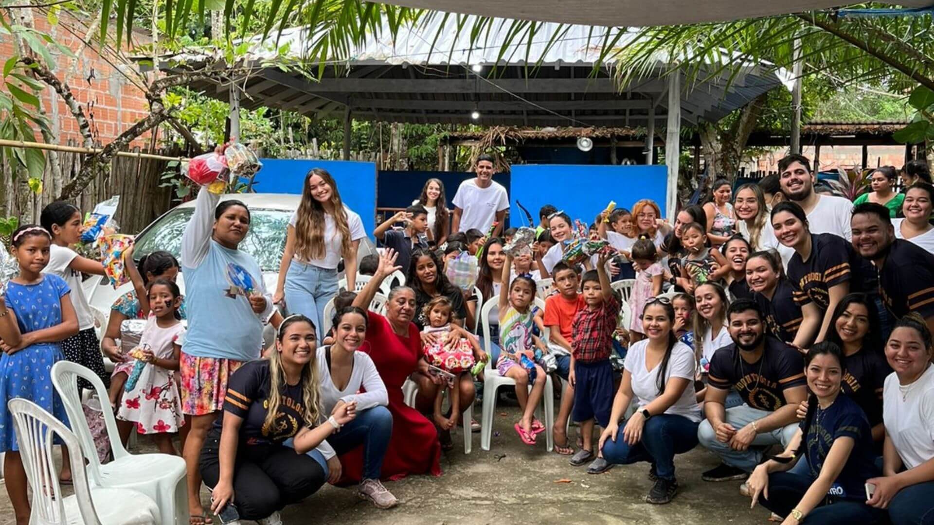Alunos do curso de Odontologia da Fametro realizaram uma ação alusiva ao Dia das Crianças, no sábado (14/10), em comunidades de Manaus, com orientação sobre a saúde bucal, distribuição de kits de higiene, além de brinquedos e guloseimas. Cerca de 300 crianças foram beneficiadas.