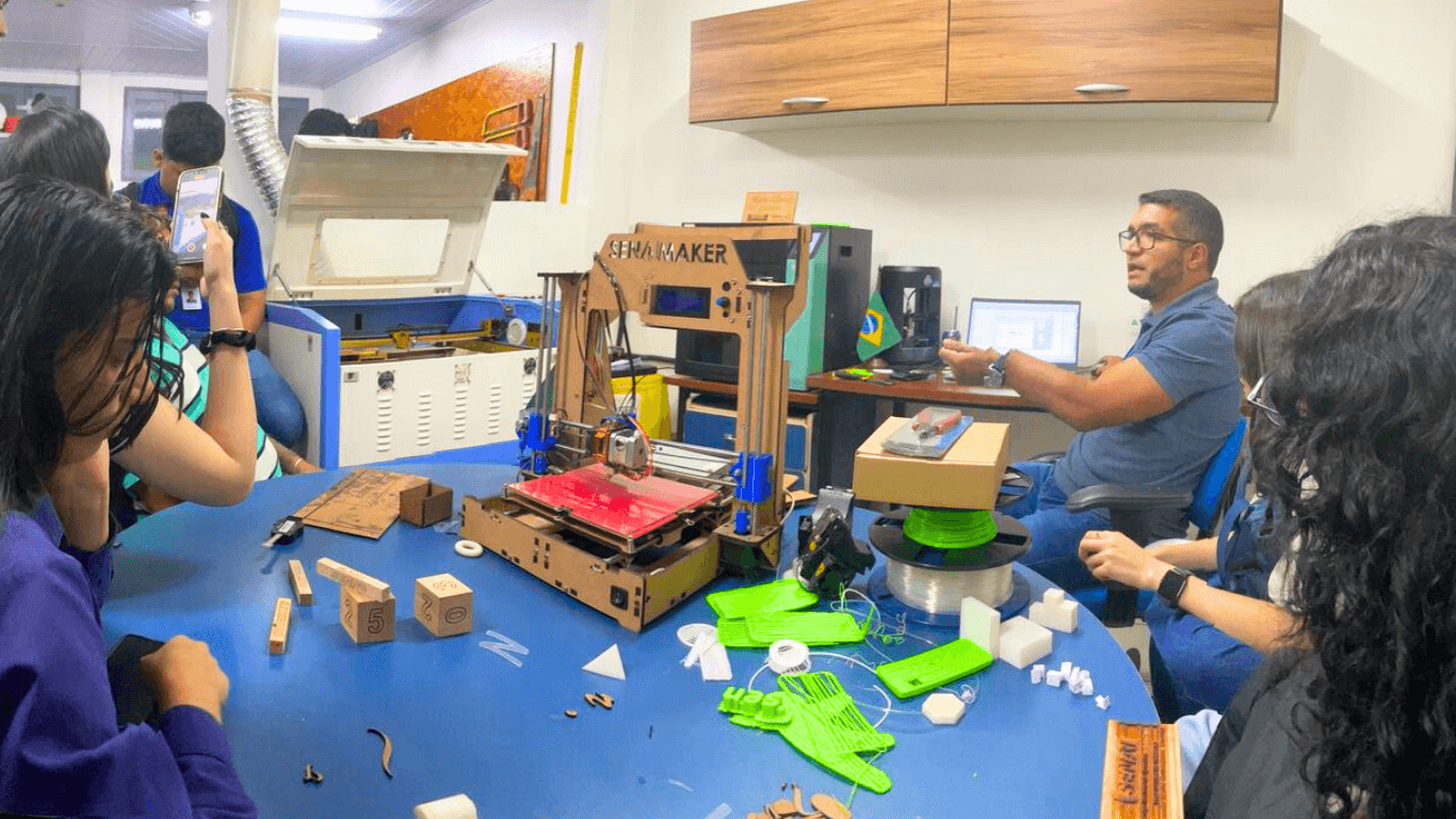 Impressão 3D e CNC a laser permitiram que os conceitos tomassem forma no mundo físico, dando aos alunos uma visão prática de como esses processos são aplicados no desenvolvimento de projetos de engenharia. Além disso, os estudantes experimentaram o processo de prototipagem utilizando CAD 2D e 3D, aumentando sua compreensão sobre como essas tecnologias se inserem na realidade do mercado.