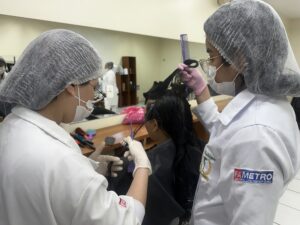 Com tradição na formação que integra teoria e prática, a Fametro realizou, na última quinta-feira (19), uma aula prática de Técnicas em Estética Capilar no laboratório da Unidade 5. A atividade foi conduzida pela professora Lene Pessoa Nabor e reuniu acadêmicos do curso de Estética e Cosmética em uma imersão prática com foco em terapias integrativas aplicadas ao cuidado capilar.