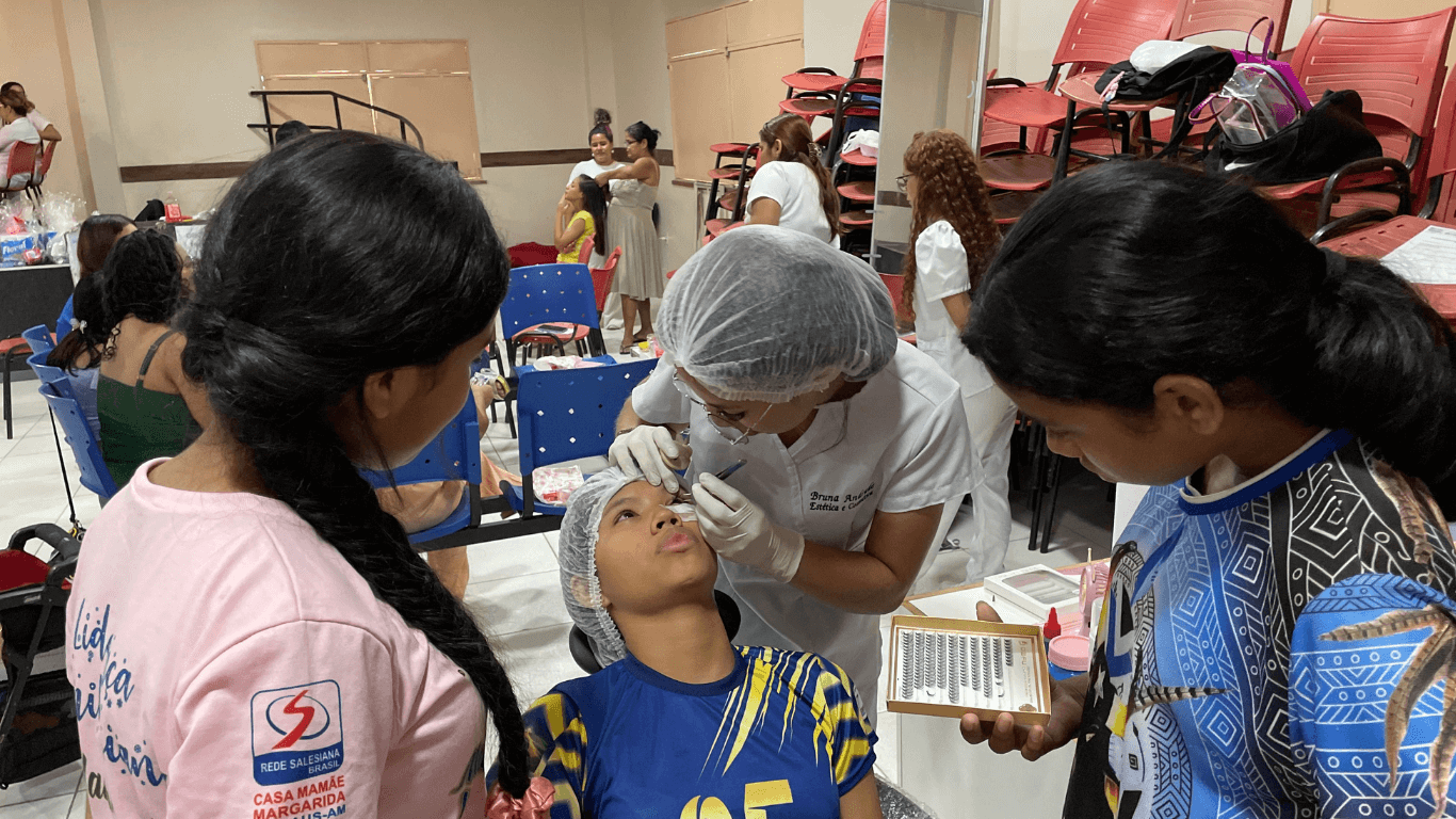 O curso de Estética e Cosmética do Centro Universitário Fametro promoveu, na última sexta-feira (3), uma ação especial na Casa Mamãe Margarida, em Manaus. A iniciativa reuniu alunos de diversas unidades da instituição, que compartilharam seus conhecimentos e práticas com as adolescentes acolhidas pela casa.