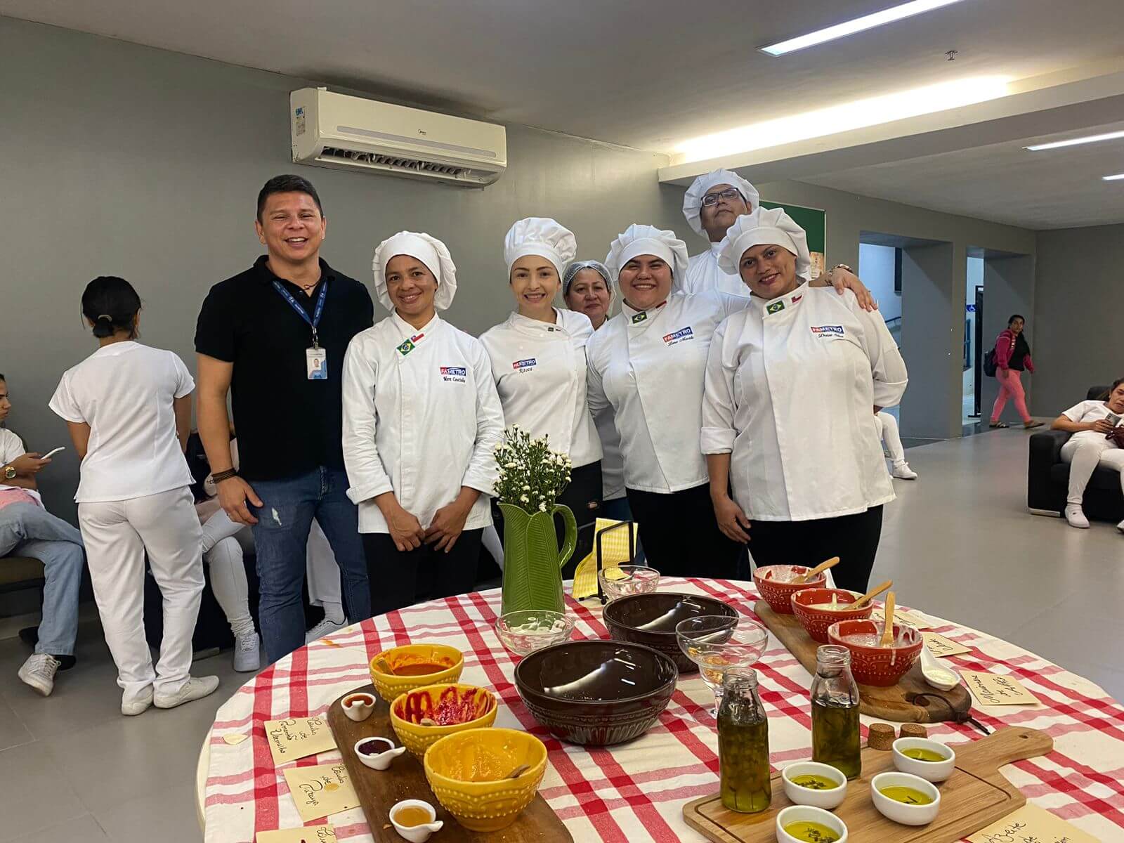 Estudantes do segundo período do curso de Gastronomia do Centro Universitário Fametro realizaram uma pequena mostra gastronômica na Unidade 5 nesta quarta-feira (13/03). O evento teve como objetivo colocar em prática os conhecimentos teóricos adquiridos no curso e explorar a criatividade dos alunos na elaboração de diversos produtos culinários.