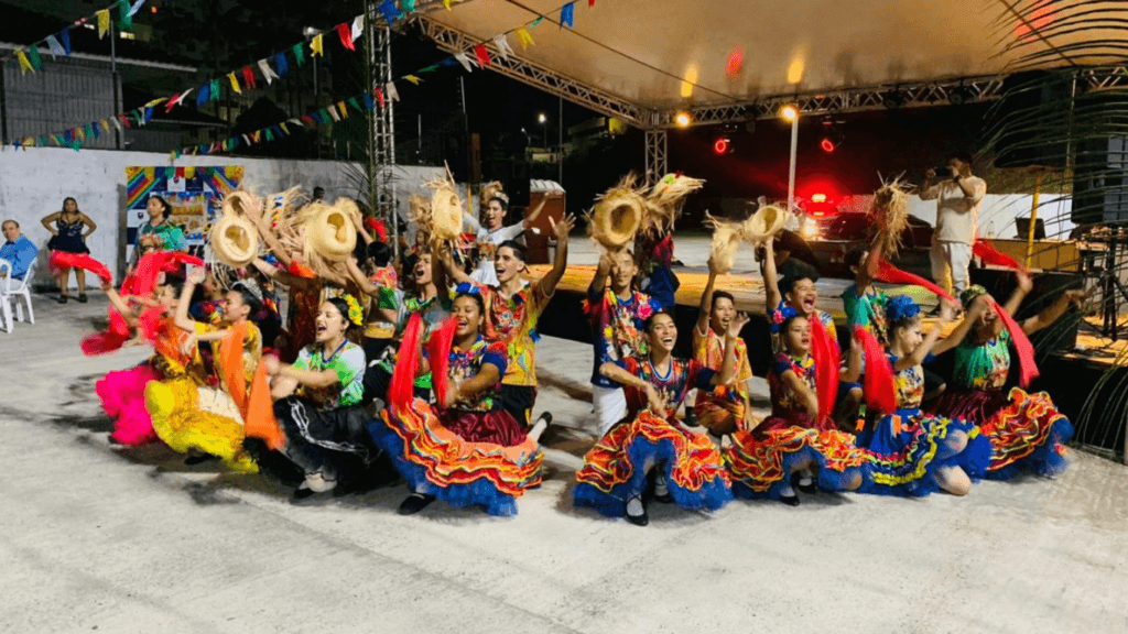 O objetivo é resgatar as festas juninas antigas, destacando danças típicas como a dança do cacetinho e as cirandas, além de apresentar a culinária junina típica da região.