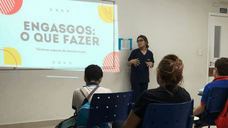 O engasgo é uma das emergências médicas mais comuns em crianças e pode colocar a vida em risco. Pensando nisso, acadêmicos do 8º período de Medicina da Fametro realizaram uma ação educativa com os estudantes do Colégio Fametro, abordando as causas, sintomas e formas corretas de agir nessas situações.