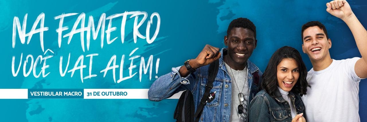 Já é possível se inscrever no vestibular macro 2020, destinado ao ingresso nos cursos de graduação tecnológicos em diversas áreas que a Fametro oferece, além das modalidades presencial, semipresencial e 100% online. As inscrições estão abertas até 30 de outubro, no site http://bit.ly/fametrovestibularmacro .