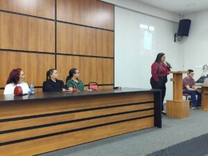 Durante o lançamento, a gestora da unidade, Inalda Olímpio, agradeceu a presença da professora Suelania Figueiredo, Coordenadora de Pesquisa e Extensão, que destacou a relevância da publicação: