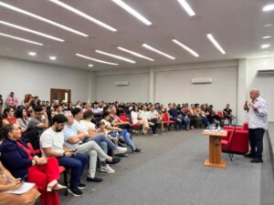 Durante a palestra, Allan Bandeira compartilhou sua história de vida e carreira. Natural de Pernambuco, ele começou trabalhando como camelô e, ao longo dos anos, construiu sua trajetória até se tornar fundador de uma das empresas mais conhecidas da região, com 48 anos de atuação no mercado.