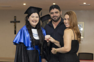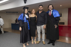 A cerimônia contou com a presença de autoridades acadêmicas que compuseram a mesa, entre elas a vice-reitora Dra Cinara Cardoso, professora Karine Mc Comb, coordenadora de Ensino dos Cursos da Saúde; o professor Roberto Júnior, coordenador do curso de Administração; além dos professores José Carlos e Wanilce Pimentel, patrona e paraninfo da turma.