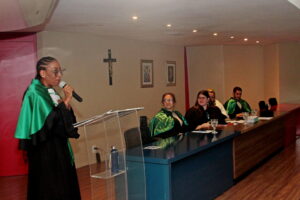 Durante a cerimônia, a reitora destacou os desafios enfrentados por quem decide seguir na vida acadêmica e valorizou o papel das famílias nesse processo.