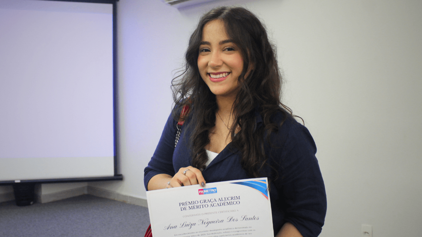 Entre os alunos homenageados, Ana Luiza Nogueira, do 5º semestre, compartilhou sua emoção ao receber o prêmio. “Essa conquista veio como uma grata surpresa. Foi um período difícil, mas de muito esforço e amor por tudo isso. Gosto de chegar às aulas com alguma preparação, correlacionar teoria e prática. Isso facilita o aprendizado. Esse resultado reflete a dedicação que tenho pelo curso e por essa profissão”, afirmou.