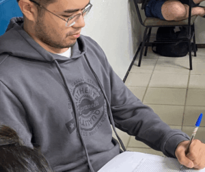 Os estudantes de Jornalismo do sétimo período também tiveram um momento de preparação, voltado para a elaboração de questões discursivas, reforçando a habilidade de argumentação e escrita crítica exigida pela prova.