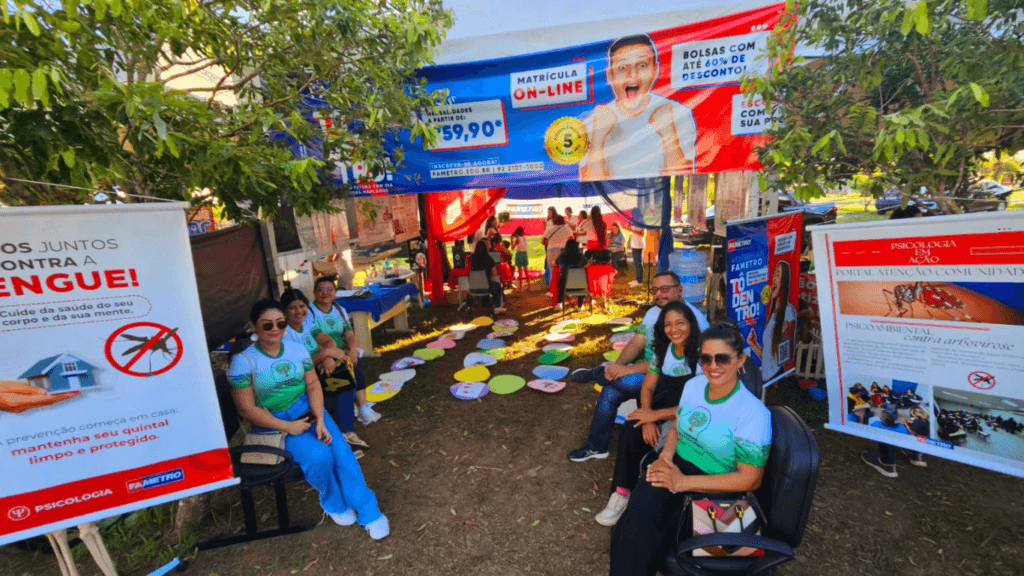 Um dos destaques foi a oferta de atendimentos psicológicos breves e gratuitos para a população, demonstrando o compromisso da Fametro em promover o acesso à saúde mental e ao cuidado psicológico na comunidade. O aluno Luís Sulliwan compartilhou sua experiência ao participar do evento.