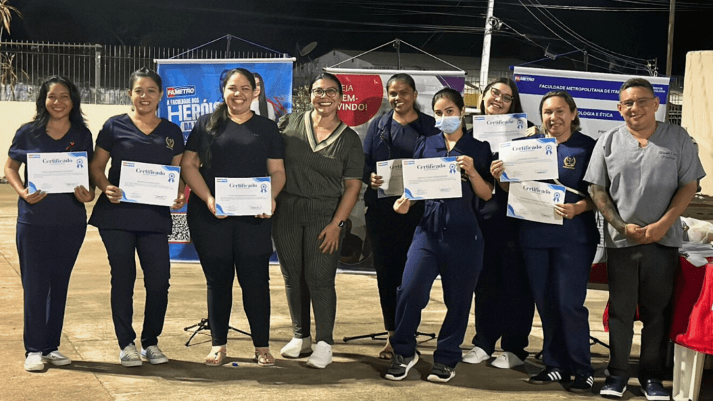 A Faculdade Metropolitana de Itacoatiara (Fametro) marcou presença na 3ª edição da Feira de Saúde da Prelazia de Itacoatiara, realizada na última quarta-feira (11). Acadêmicos do 4º período de Psicologia, acompanhados pelos docentes Suelen Romão e Ronnie Costa, promoveram palestras sobre saúde mental e realizaram atendimentos individuais, reforçando o compromisso da instituição com a educação e o bem-estar da comunidade.