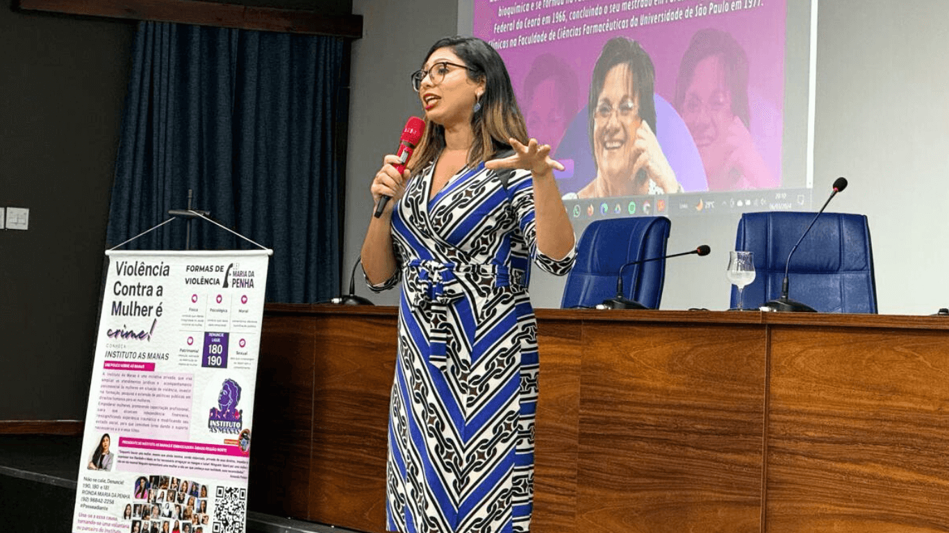 Amanda Pinheiro, presidente do Instituto As Manas, ampliou essa discussão sobre a violência enfrentada pelas mulheres e elucidou sobre os tipos de violência que elas podem sofrer, destacando leis importantes como a Lei Maria da Penha (11.340/2006), Lei Carolina Dieckmann (12.737/2012), Lei do Minuto Seguinte (12.845/2013), Lei Joana Maranhão (12.650/2015) e Lei do Feminicídio (13.104/2015), que oferecem amparo legal e suporte às vítimas.