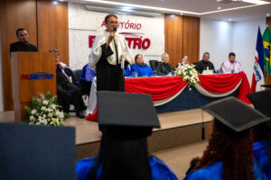 A solenidade contou com a presença do Gestor da unidade Leste, professor Gerson Nogueira, além de coordenadores de cursos, docentes e paraninfos, que destacaram a importância da formação ética, técnica e humanística dos novos profissionais.